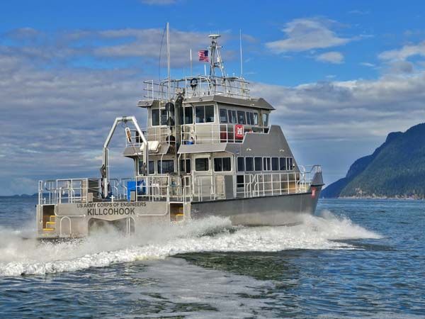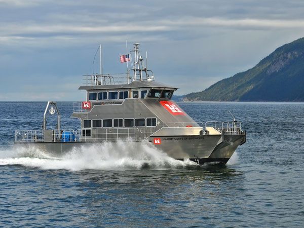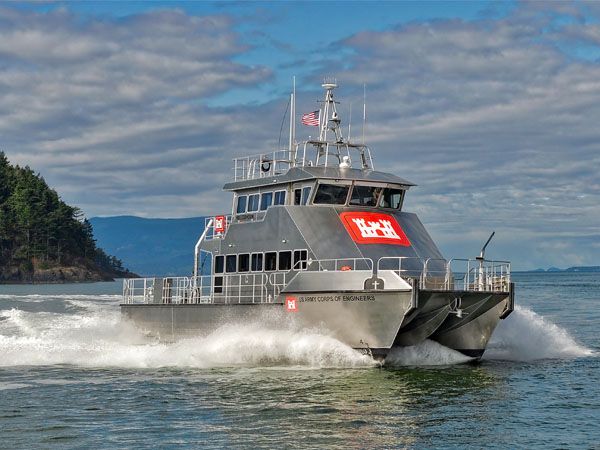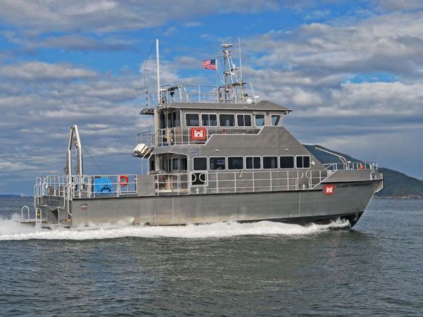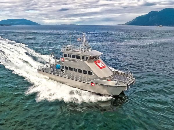 The 68 foot propeller driven vessel has a cruising speed of 27.5 knot. Equipment fitted to the working deck includes an A-Frame with tow fish winch and a survey transducer moon pool with a retractable strut. The two tier cabin provides plenty of work-space for survey and vessel operations on separate decks.