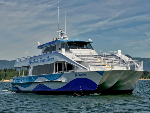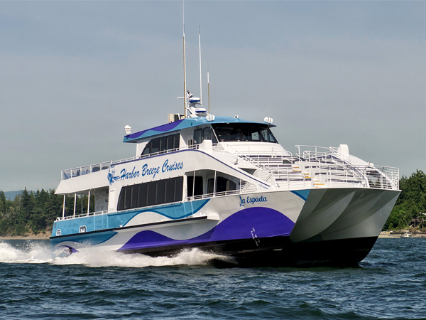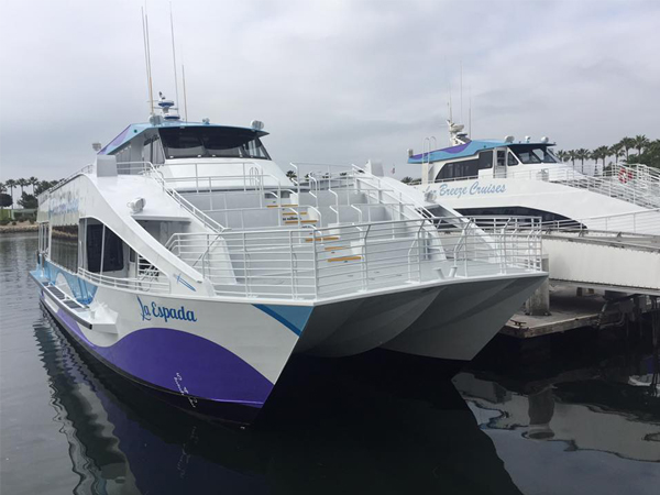 Following the success of the vessel Triumphant, the 83' Teknicraft built for Harbor Breeze Cruises in 2013, Danny Salas has commissioned Teknicraft to provide the design to build a second 83'er. The second boat, launched by All American Marine in Bellingham, WA, in spring 2016 is already enjoying a successful summer season. The La Espada hull is practically a sistership to Triumphant, however the cabin design and interior lay-out has been altered to allow the boat to be utilized for different operations in the Long Beach, California area. Furthermore La Espada will carry up to 250 passengers, increasing its capacity by 66% whilst still cruising around 25 knots.