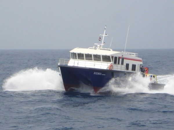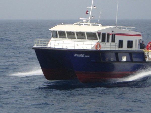 Nemo is fitted with an array of equipment for servicing of large ships and includes facilities to conduct diving operations, underwater cleaning and inspection of hulls. With a cruising speed of 22 to 24 knots, this catamaran has the ability to respond faster than other conventional craft to service ships waiting offshore.