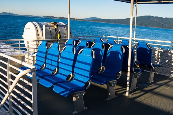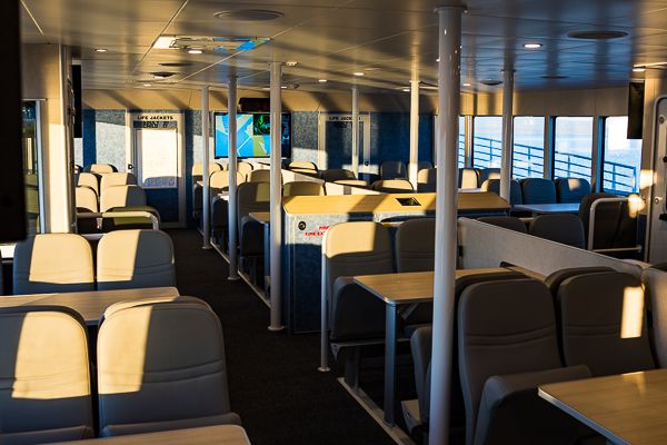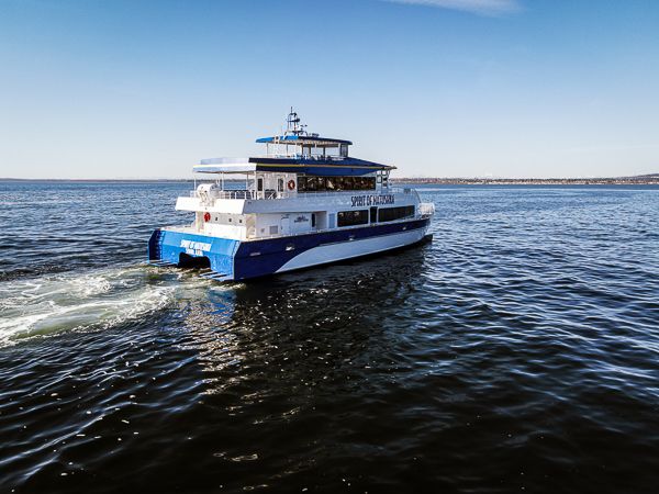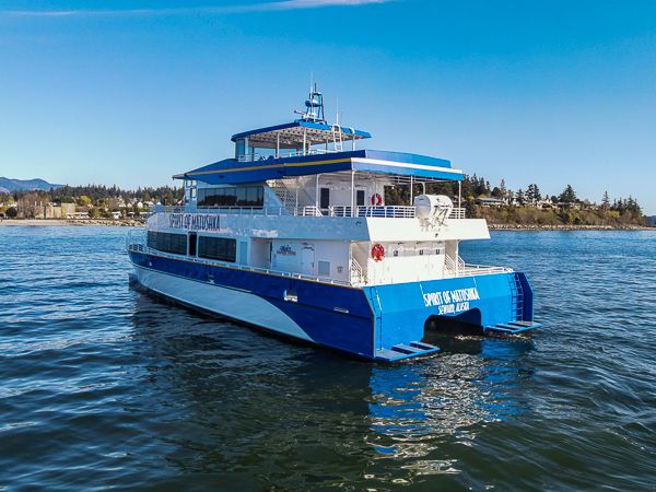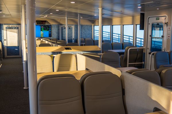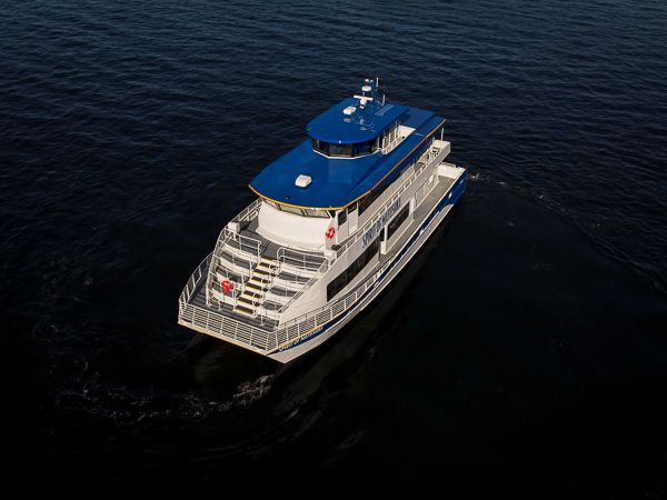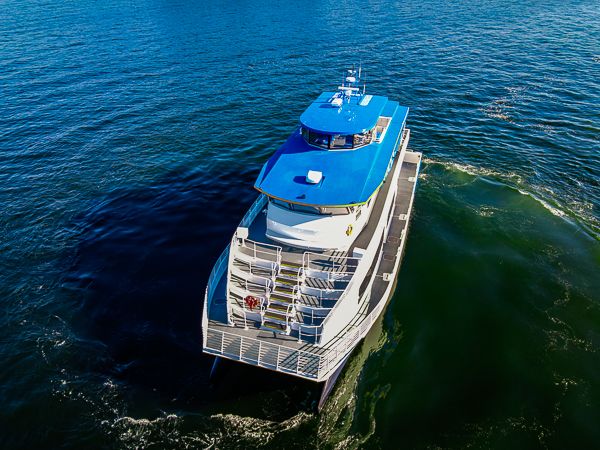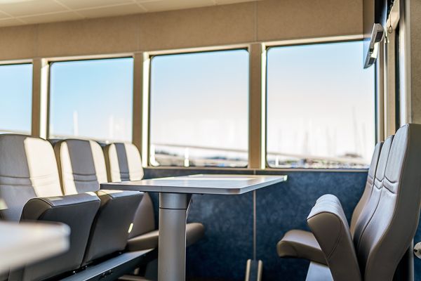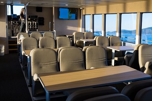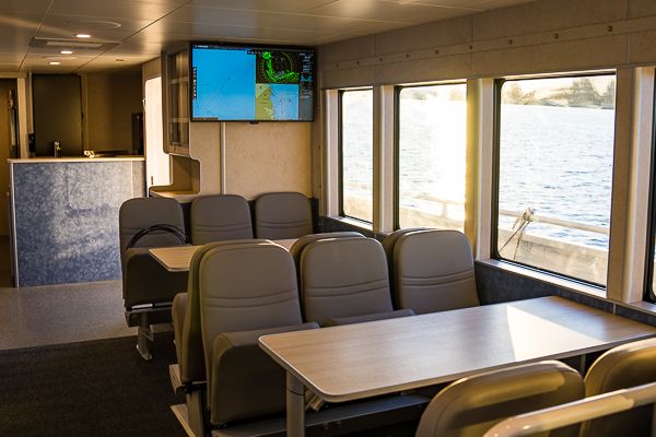 Onboard the vessel passengers can bask in the spacious comfort of two enclosed cabins, which include tables at every seat. All of the exterior seats are underneath covered canopies, including the open-air 3rd deck. The entire main deck, including the bow, has wheelchair access and the main deck cabin includes wheelchair-designated seating locations. The vessel also features an expansive stadium standing area for wildlife and nature viewing.