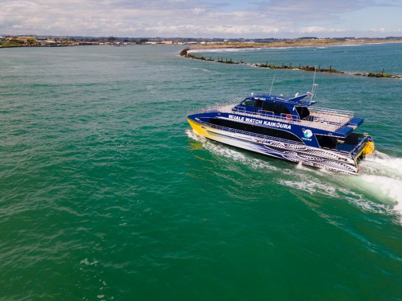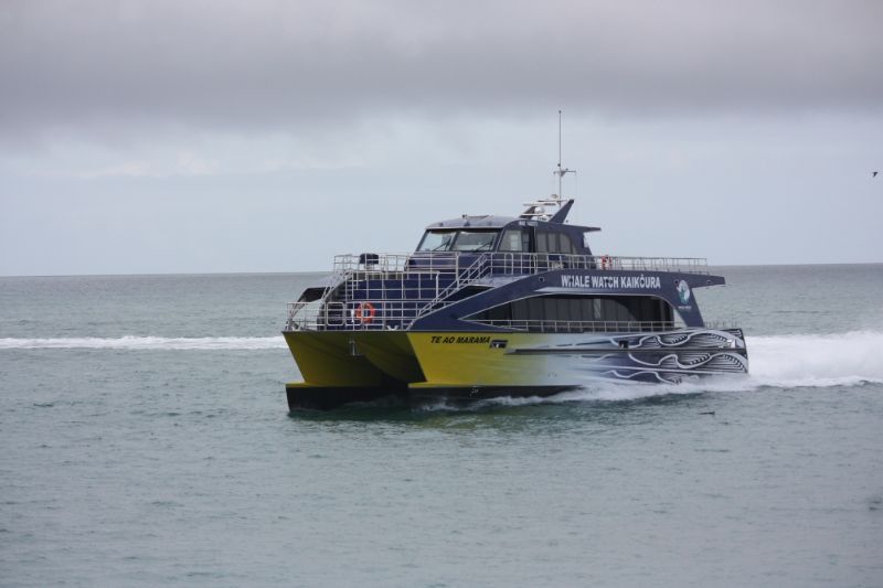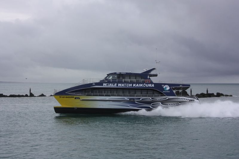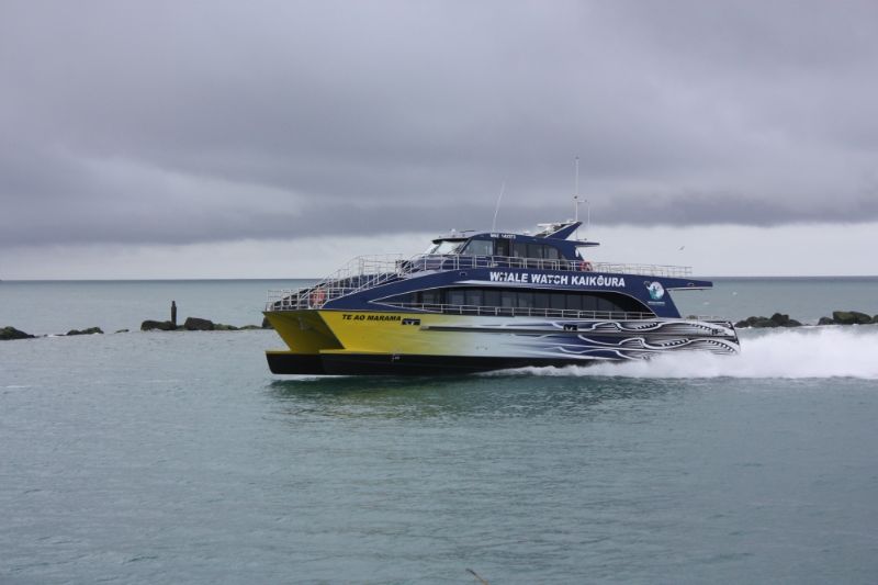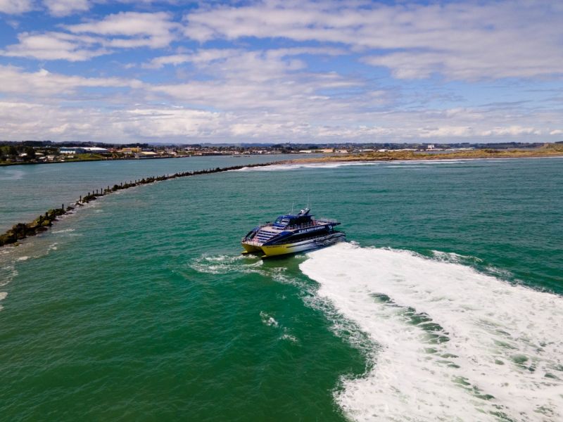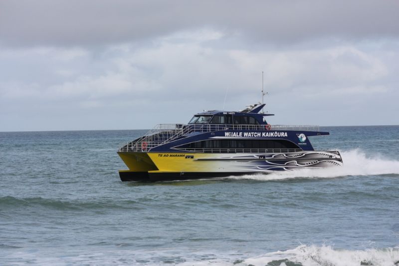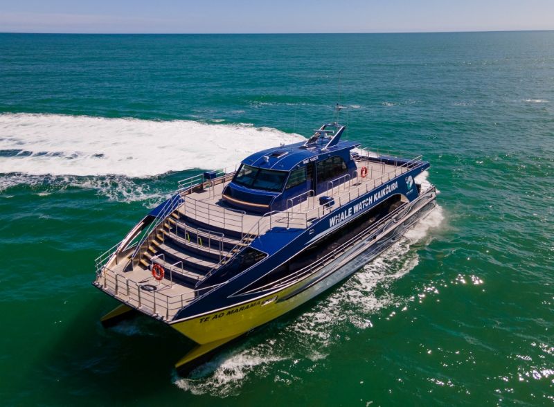 Power is provided by four Scania diesel engines driving four HamiltonJet units. Among Te Ao Marama‘s features are an extended bow hull design and an adjustable hydrofoil system to improve vessel performance and sea keeping capabilities, together with ride control system that automatically reduces pitch and roll.